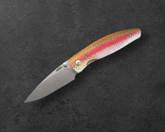 Three Rivers Mfg. (TRM) Atom - DEALER EXCLUSIVE - RAINBOW TROUT G10 Contoured Handles - 20CV Blade