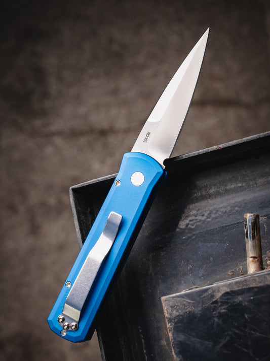 Pro-Tech Les George LG3101-Blue Rockeye AUTO - Blue Handle - Magnacut Blade - Blasted Hardware