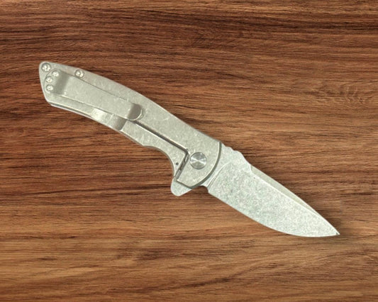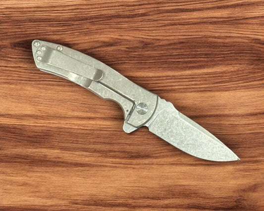 Les George Defiant 7 Hydrax Flipper - Titanium Handles w/ Carbon Fiber Inlay - MagnaCut Stonewashed Blade