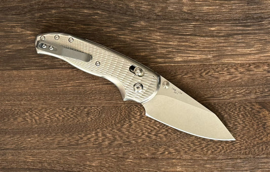 Vero Axon Mini Frame Lock - Hand Satin M390 Blade - Raw Titanium Handle - First Run #244