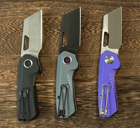 Divo Knives Growler V2 - Blue Aluminum Handle, Sandwashed 154CM Blade
