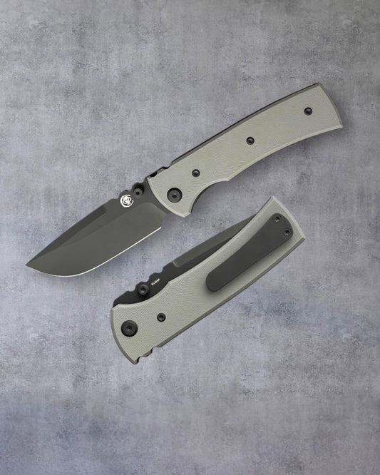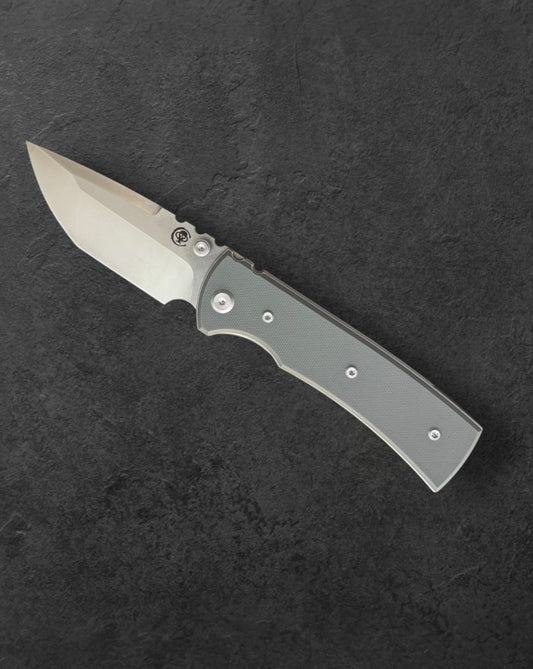 Chaves Knives Exclusive Blue Label Scapegoat 229 - Charcoal Grey Handles - Belt Satin Elmax Spearpoint Blade
