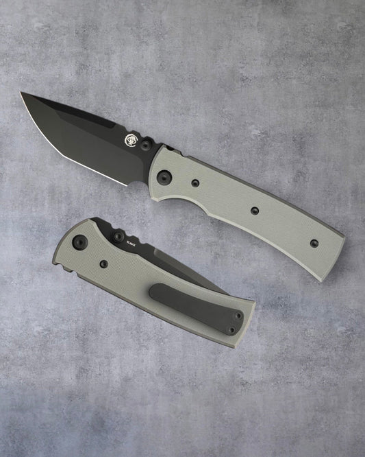 Chaves Knives Exclusive Blue Label Redencion 229 - Charcoal Grey Handles - Blackout Elmax Drop Point Blade
