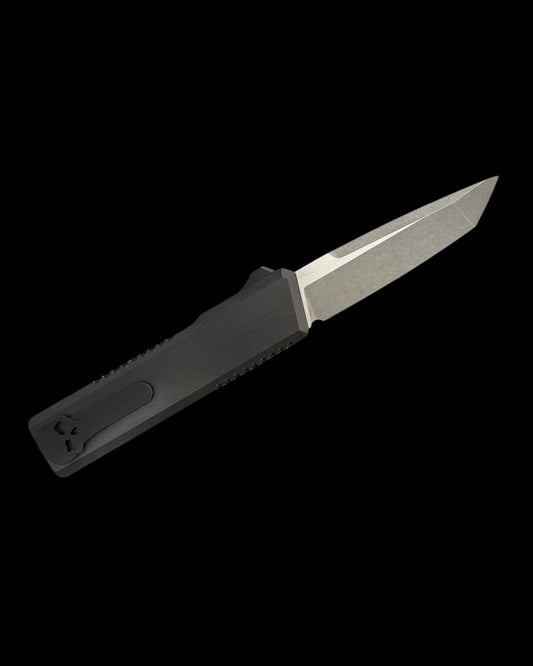 (Open Box) Pro-Tech Custom Steel Gridlock Mordax - "Gridlock" Handle - Stonewash Magnacut Blade - Black Lip Pearl Push Button - Blasted Mini Deep Carry Clip
