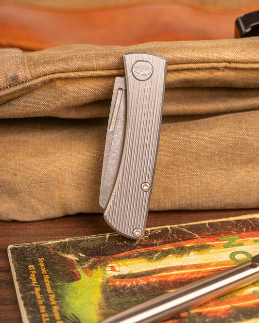 American Blade Works Slip Joint - Straight Line Pattern Titanium Handle - Magnacut Wharncliffe Blade