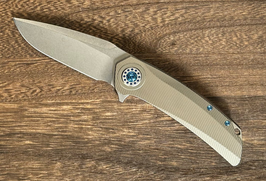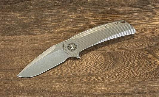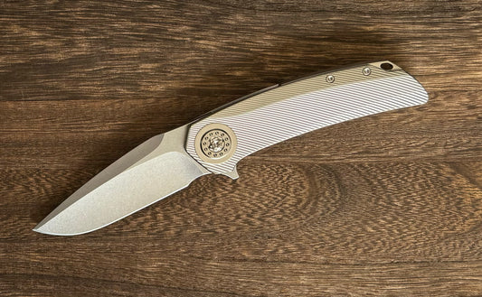 Skiff Made Blades Fugitive, S45VN Blade, Milled Titanium Scales, Two Tone Bead Blasted Pivot Collar, Backspacer and Clip, #143