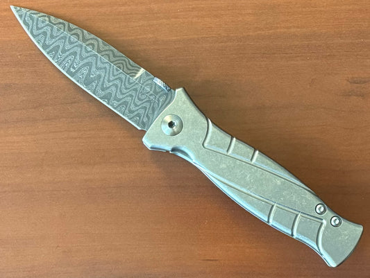 Les George Knives MK3 - Damascus Blade - Sweep Stonewash Titanium Handle