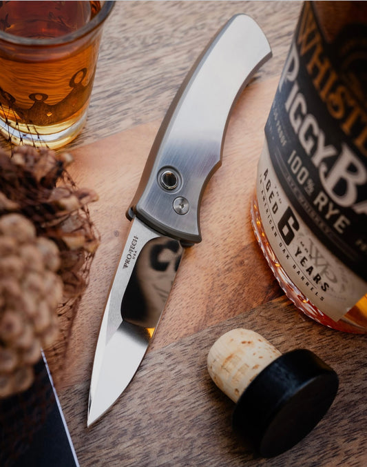 Pro-Tech Duke Custom 002 AUTO - 2-Tone 17-4 Steel Handle - Polished Mike Irie Compound Ground 154CM Blade - Pearl Button - Custom Clip
