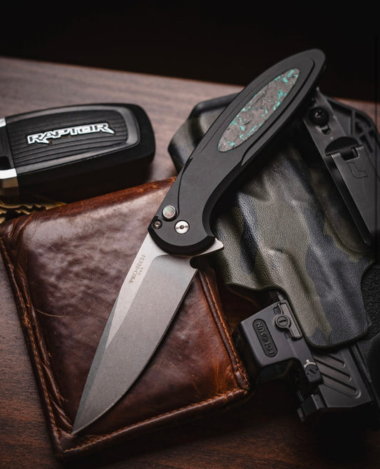 Pro-Tech Vero Synapse Auto - Black Aluminum and Micarta Handle - Stonewash Magnacut Blade - Blasted Hardware - Black Signature Vero Clip