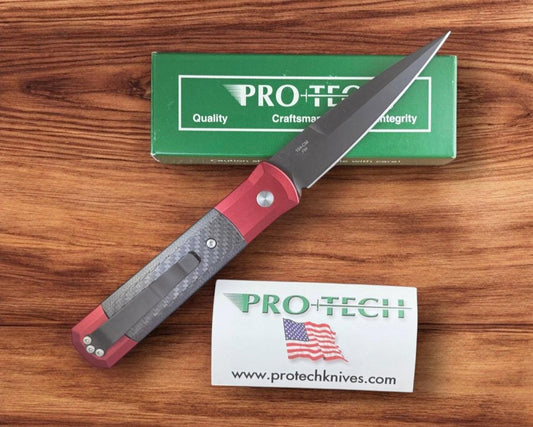 Pro-Tech Ltd Edition Godfather AUTO - Red Aluminum and Black Carbon Fiber Handle - DLC Black 154CM Blade