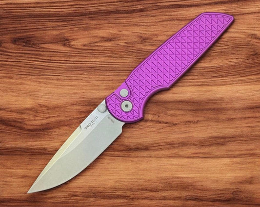Pro-Tech TR-3 INTEGRITY Manual - Relic Textured Purple Handle - Stonewash S35vn Blade - Blasted Wide Deep Carry Clip