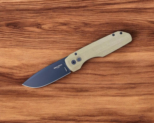Pro-Tech TR-3 INTEGRITY Manual - Relic Textured Green Handle - DLC Black S35vn Blade - Black Wide Deep Carry Clip