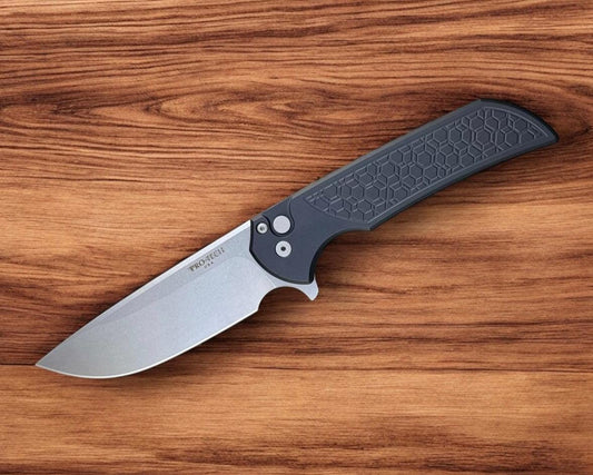 Pro-Tech Gridlock Mordax - Black "Gridlock" Handle - Stonewash Magnacut Blade - Blasted Clip