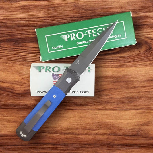 Pro-Tech Ltd Edition Godfather AUTO - Black Aluminum and Blue G10 Handle - DLC Black 154CM Blade