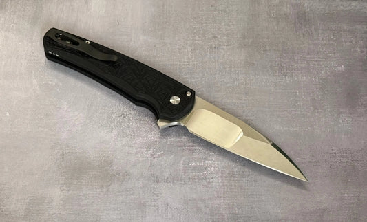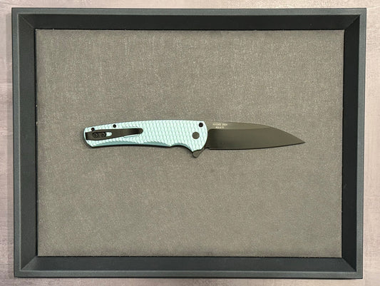 (Open Box) Pro-Tech Custom Steel Gridlock Mordax - "Gridlock" Handle - Stonewash Magnacut Blade - Black Lip Pearl Push Button - Blasted Mini Deep Carry Clip