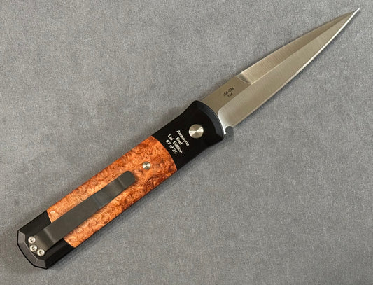 Pro-Tech Limited Edition Godfather - Black w/ Amboyna Burl Inlays - Satin Blade #7 of 25 - Brand New