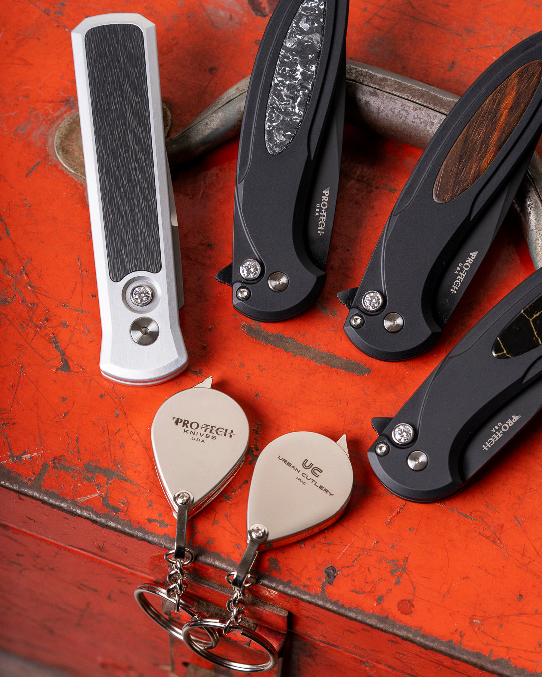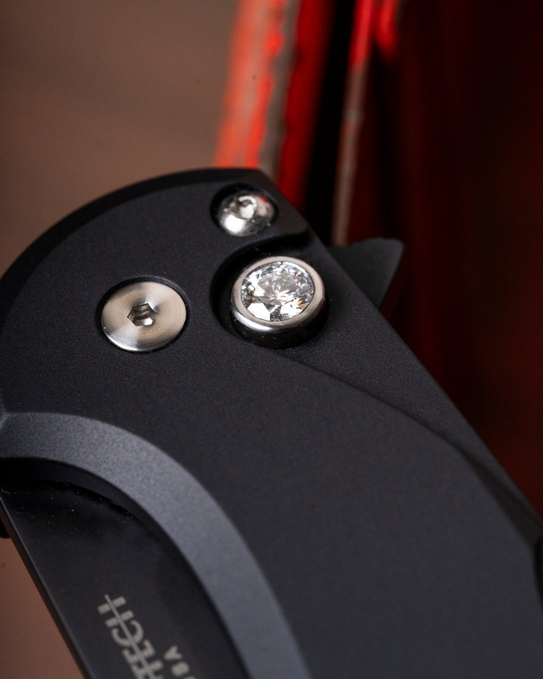 Handmade in California, Pro-Tech knives are known for their precision, performance, and timeless design. This exclusive edition elevates the standard with a rare luxury detail that ties directly to our Manhattan Diamond District roots.