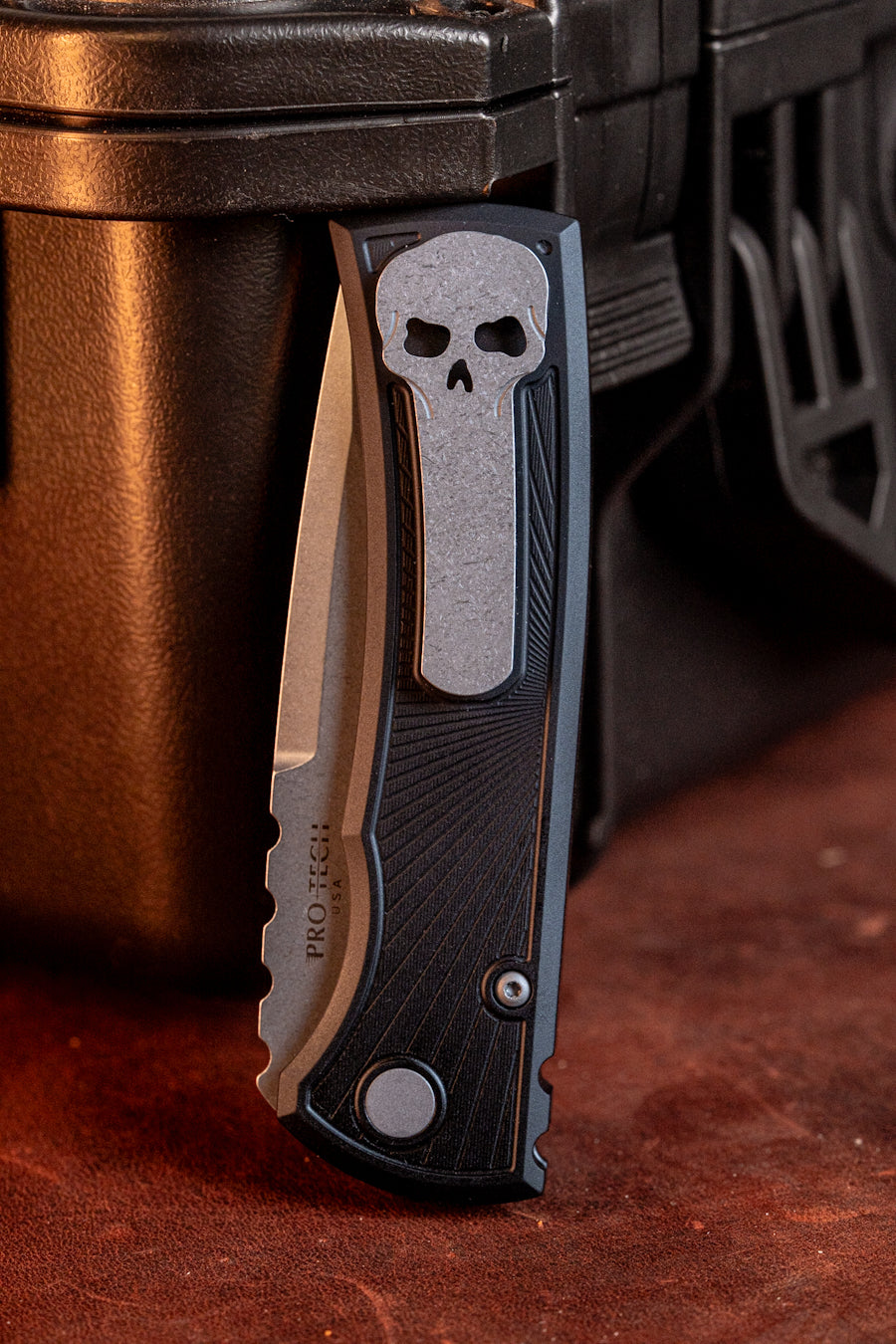Chaves x ProTech 229 Redencion Auto - Black Key Milled Handles - Stonewash S35vn Blade