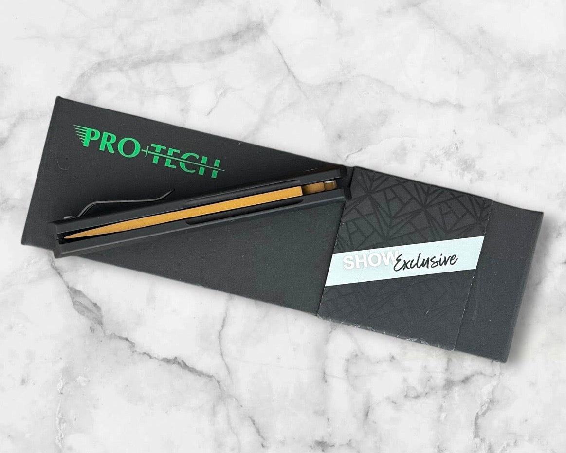 Pro-Tech 2025 F&F Show Exclusive Boker Burnley Kwaiken AUTO - Black Aluminum Handle - Tan 154CM Kwaiken Blade